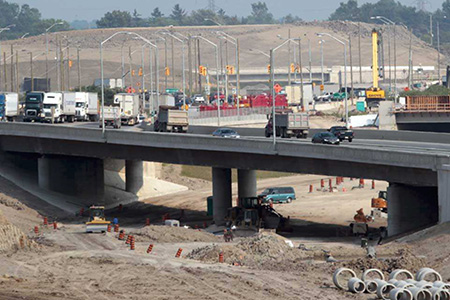 Construction of The Parkway began in August 2011. The first section of Highway 401 was opened in mid-2015 and the remaining section by the end of the same year.??During construction four lanes of traffic ??? two in each direction ??? were maintained during core traveling hours. On-site temporary roads (road diversions) were built to move traffic around construction activities and maintain traffic flow while construction of the tunnels and bridges was underway. Additionally, Mid??South and the other subcontractors implemented measures to minimize the impact of noise and dust of construction on the community.
